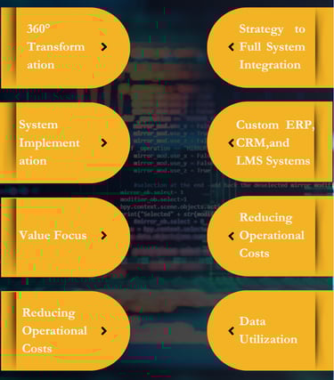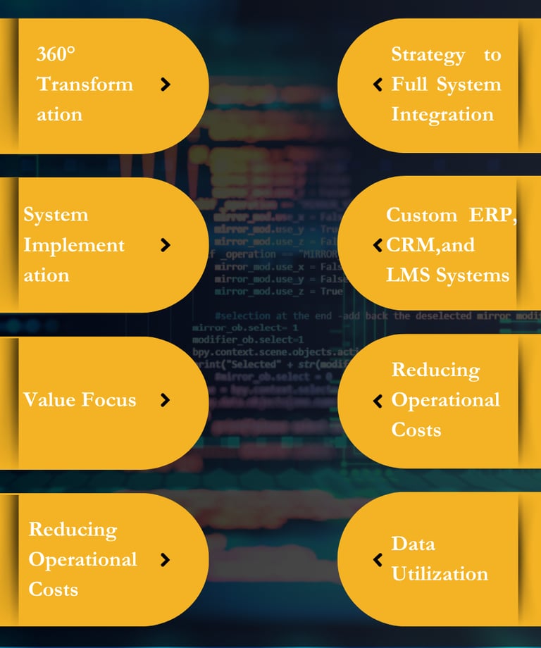 What It Is: We design, develop, and deploy custom-built software solutions, including Enterprise Resource Planning (ERP), Customer Relationship Management (CRM), and Learning Management Systems (LMS).